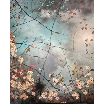 Cette composition surréaliste capture une forêt onirique où la nature et l'imagination s'entrelacent. Les orbes réfléchissants symbolisent des moments de clarté au milieu du chaos.
